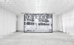 「共時書寫建築工作坊」在《未知的質域》建築工作坊中串連了不同產業的核心知識,最終使用紡紗布與240張著墨的複合紙(薄纖紙與外部塗層加工)、740公尺纜索,在面積達630平方公尺的範圍內,創造出代表山、城、室的139個空間意像,參觀者可在纜索構成的多重視點導引下,自由穿梭於如迷宮般的裝置中,並與光影、空間、路徑、材料及未知的人事物相遇。